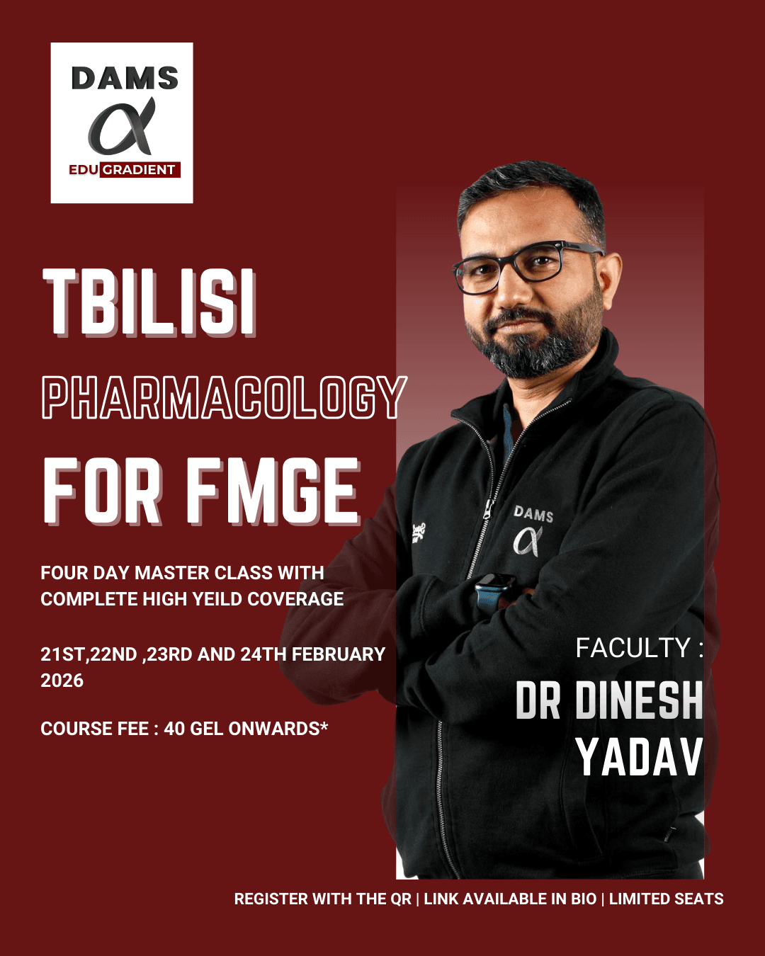 Renowned Pharmacology Faculty at DAMS, Dr. Dinesh Yadav is known for his clear teaching style, strong conceptual explanations, and exam-oriented approach. His pharmacology sessions have helped thousands of students master one of the toughest FMGE subjects with confidence.