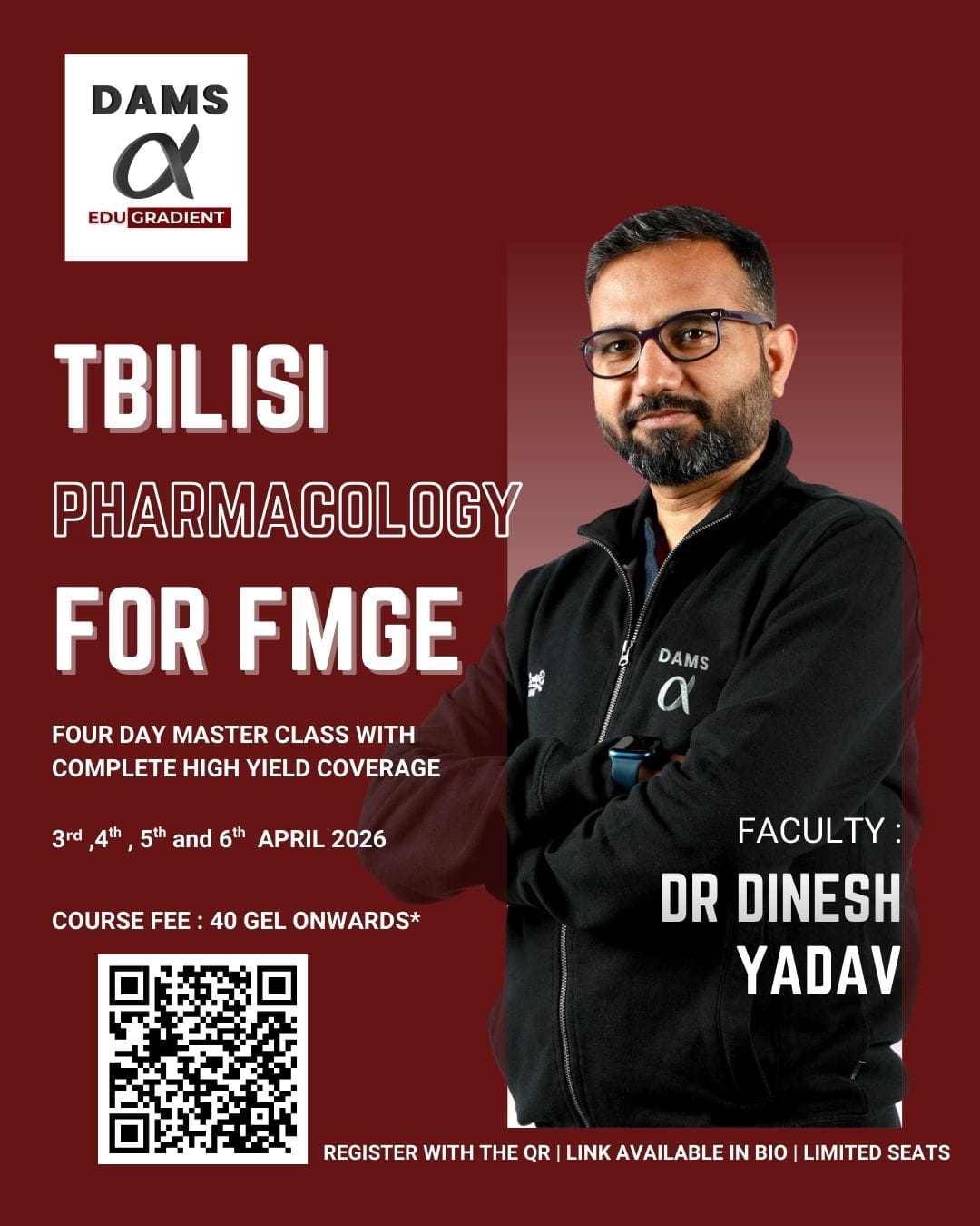 Renowned Pharmacology Faculty at DAMS, Dr. Dinesh Yadav is known for his clear teaching style, strong conceptual explanations, and exam-oriented approach. His pharmacology sessions have helped thousands of students master one of the toughest FMGE subjects with confidence.
